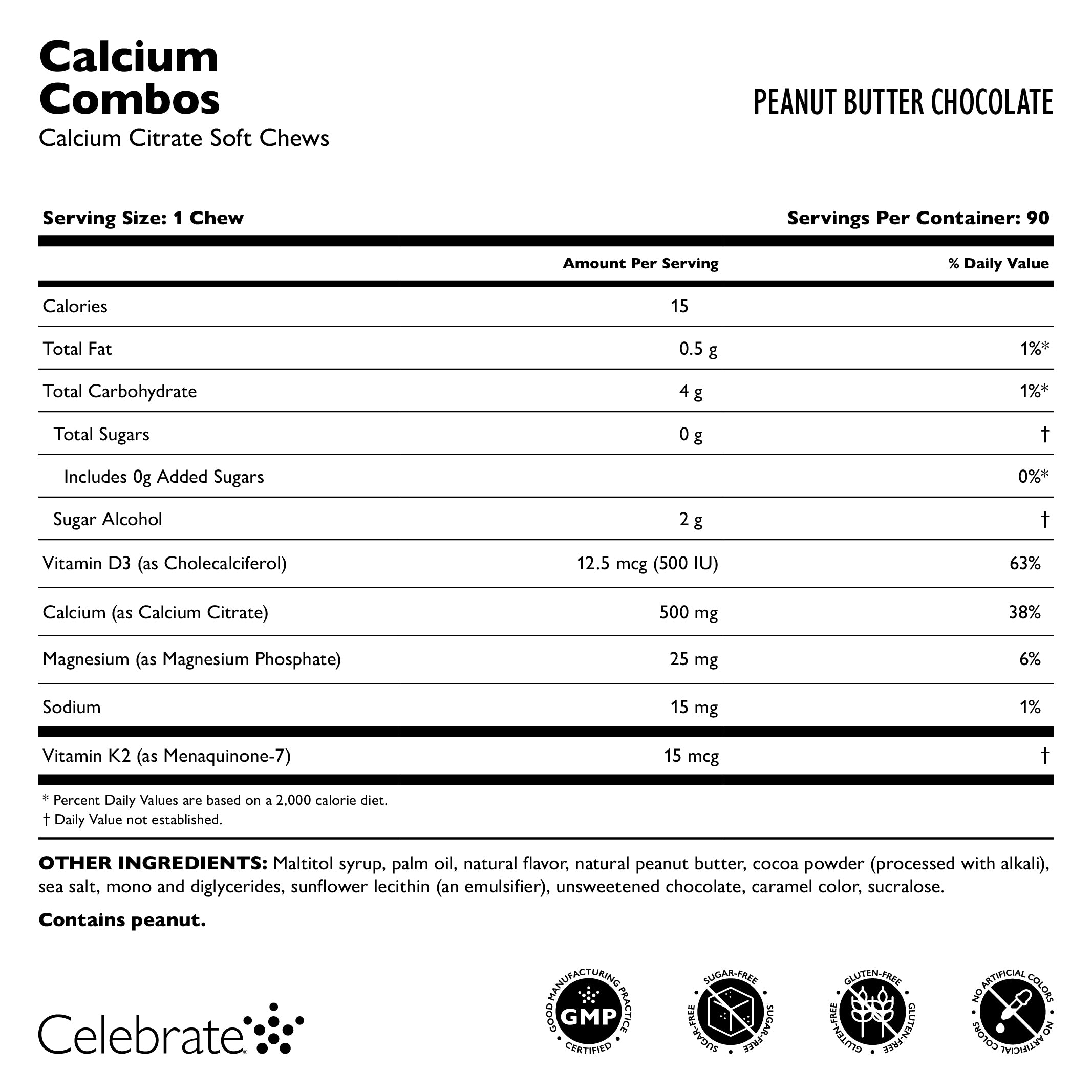 Celebrate Calcio I Combos combinano due sapori stratificati in un'unica gomma morbida veramente straordinaria! I Combos vantano una formulazione migliorata per la salute delle ossa che include magnesio e vitamina K2 (come MK-7). Inoltre, proprio come i nostri altri Calcio Chews Morbidi al Citrato, la consistenza morbida dei Combos li rende facili da masticare senza attaccarsi ai denti. Tutti i nostri chews morbidi rispettano gli standard ASMBS e forniscono citrato di calcio e vitamina D3. Gusti ogni morso di queste entusiasmanti combinazioni di sapori!